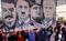 20世紀の独裁者、ヒトラー、ムッソリーニ、スターリンに加えトランプ大統領の似顔絵を描いた横断幕をかざしてデモ行進するハイチの人たち