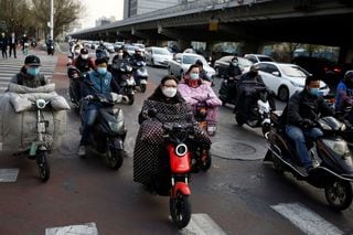 ロックダウンされたジャカルタへの出入りを制限する検問所の前に立つ兵士と警官(写真:AP/アフロ)